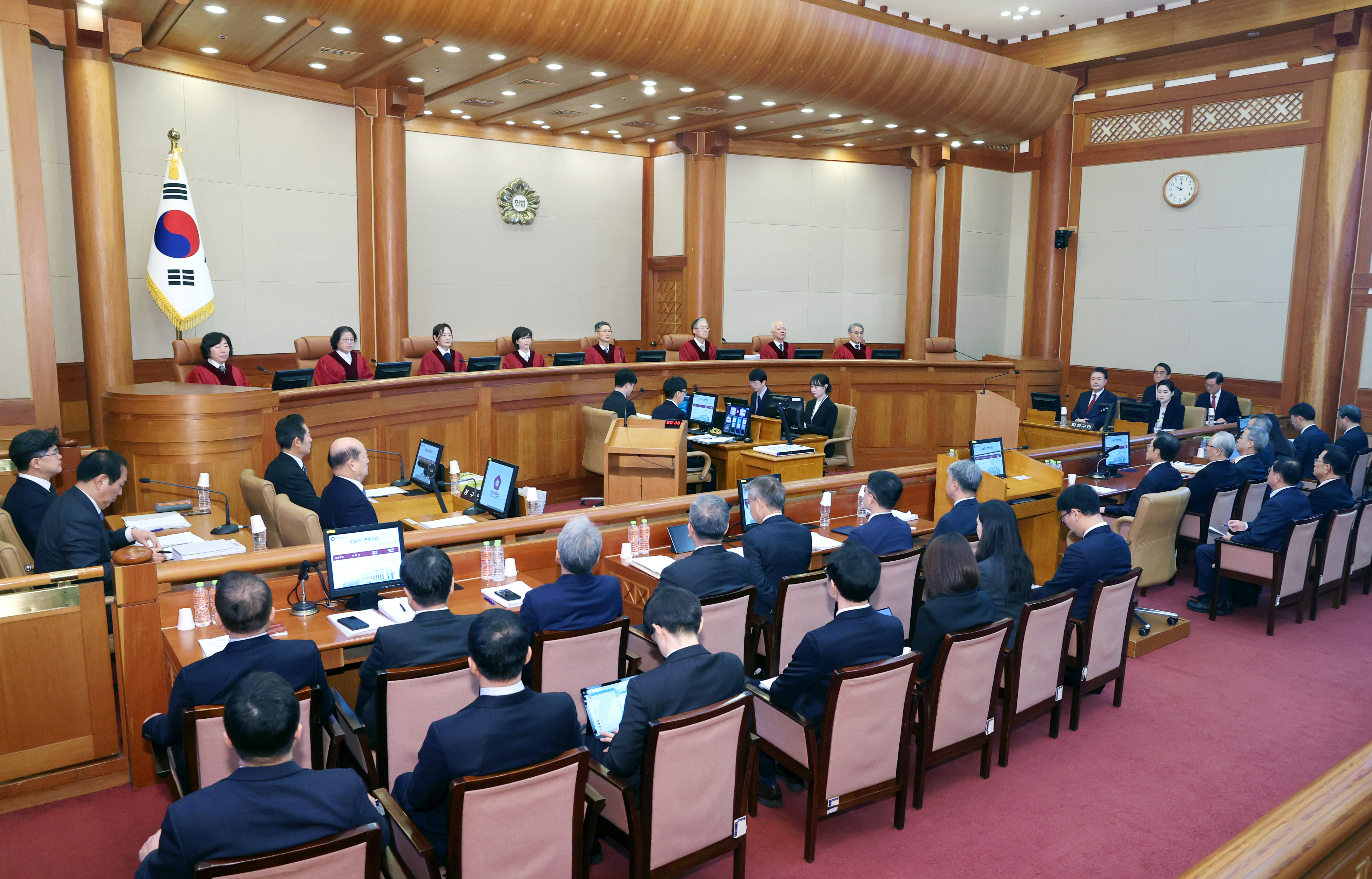 이날 변론에는 청구인 측 소추위원과 피청구인이 모두 참석한 가운데, 증인신문 등이 실시되었습니다.