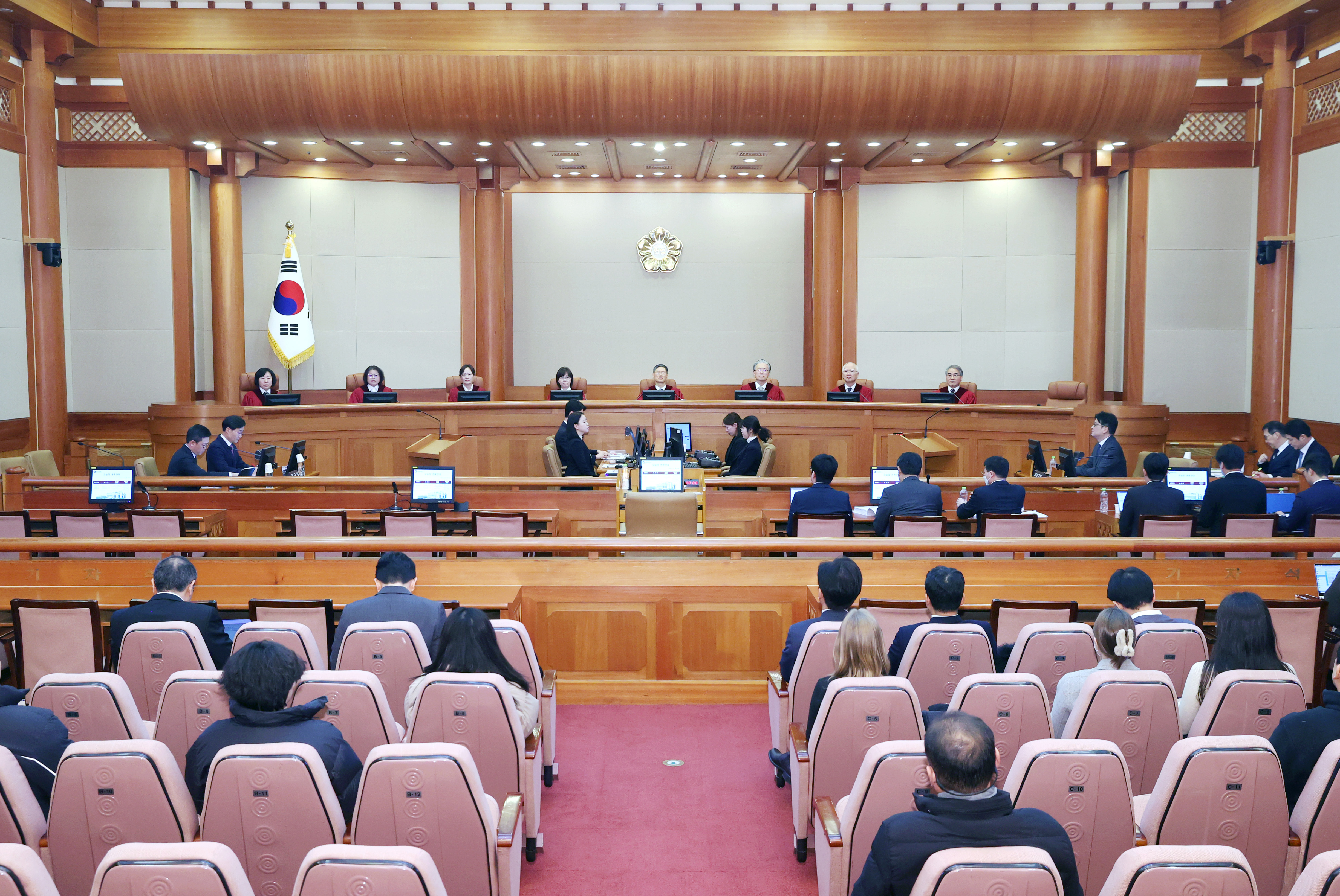 이날 재판부는 변론에 참석한 청구인 측 대리인, 피청구인과 피청구인 측 대리인 등을 통해 양측의 주장을 들었습니다.