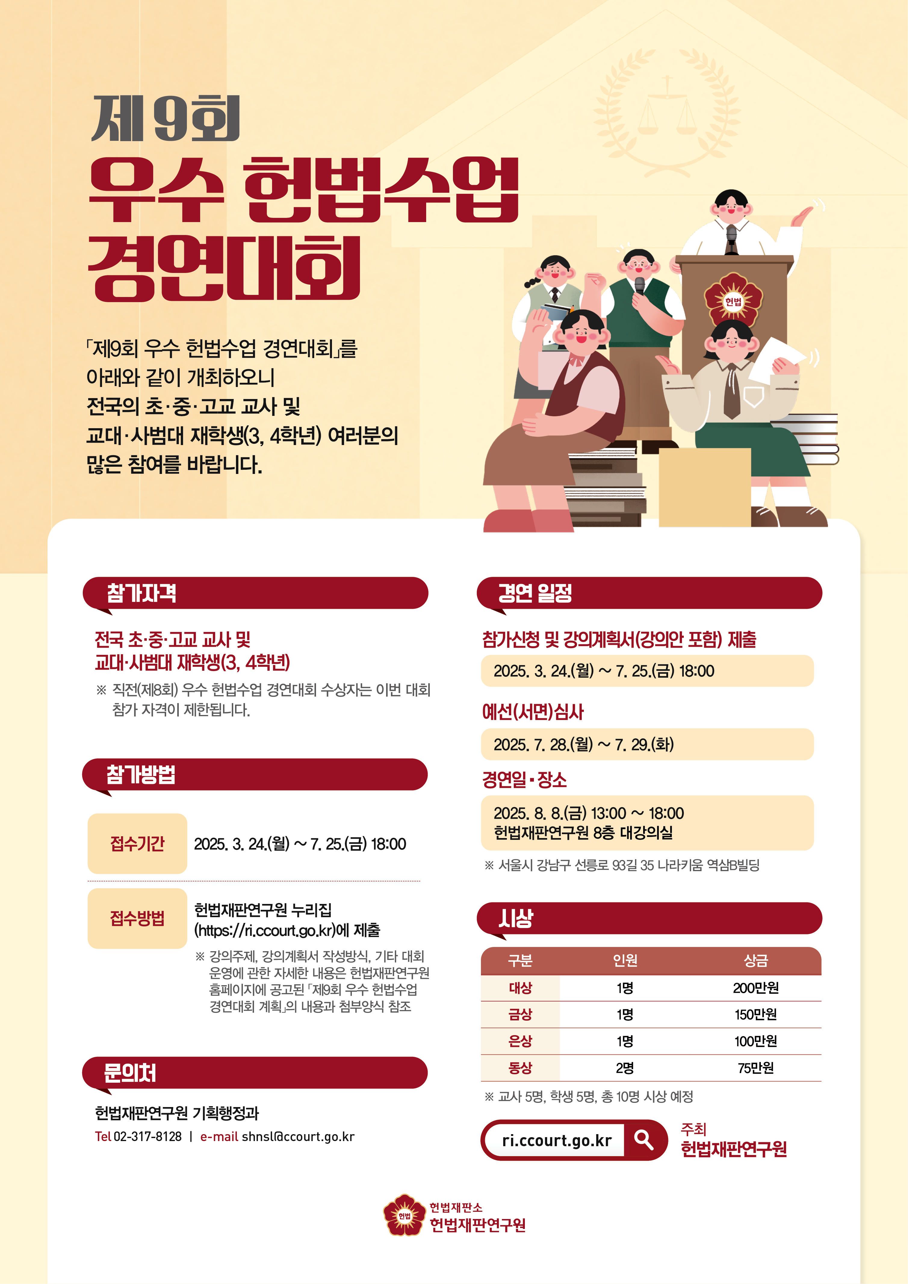 「제9회 우수 헌법수업 경연대회」 를 아래와 같이 개최하오니