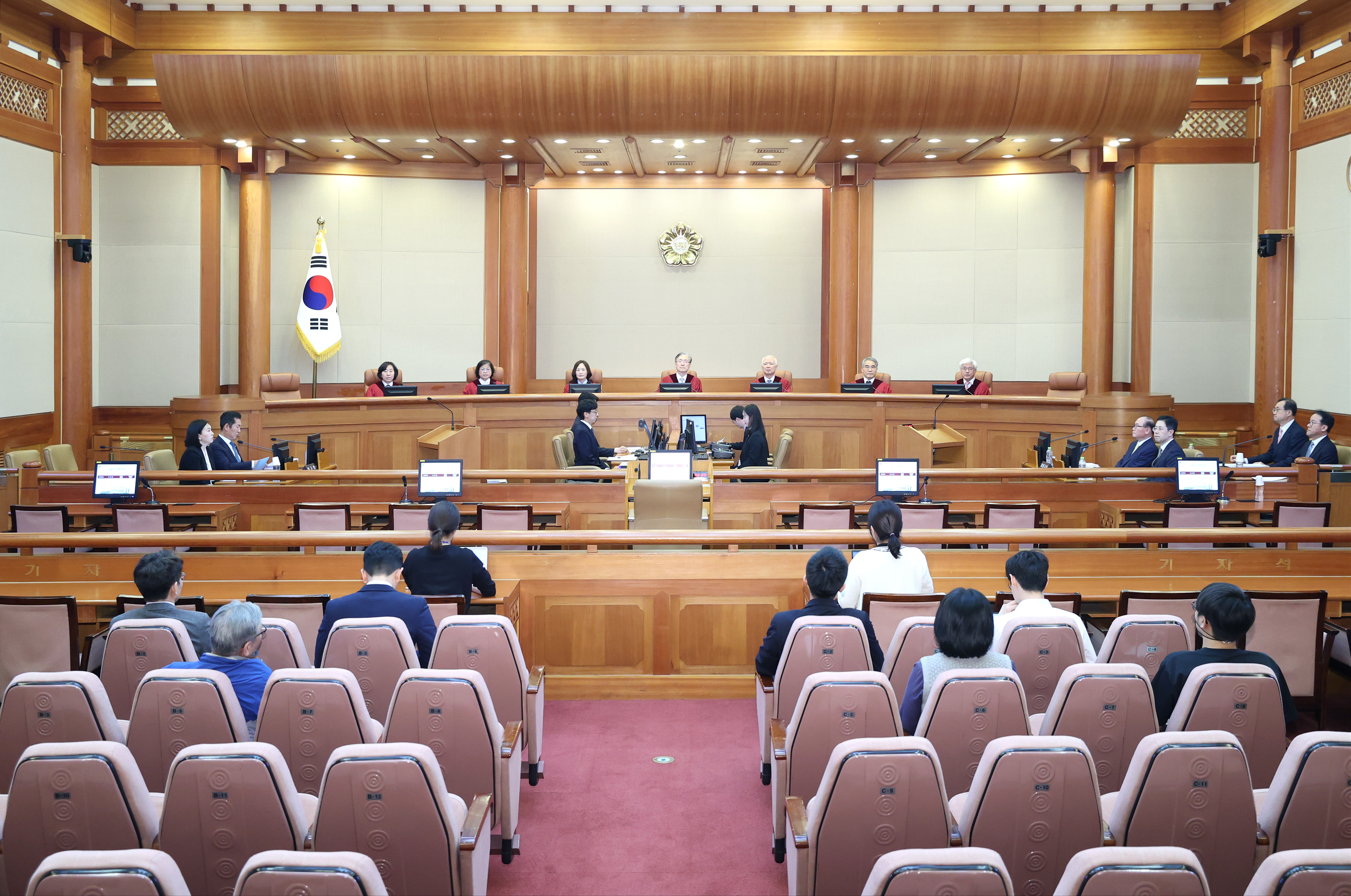 재판부는 변론에 참석한 청구인 측 소추위원과 대리인, 피청구인과 피청구인 측 대리인 등을 통해 양측의 주장을 각각 들었습니다.